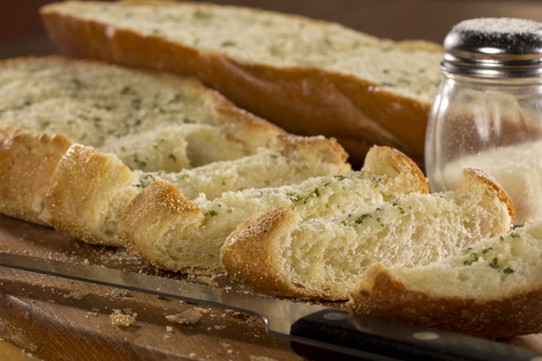 Check the bread after eight minutes to look for melted butter and slightly browned edges on the bread. Spread butter or the homemade garlic butter below onto the bread of choice. When the bread is cut keep it in a single layer in foil. Remove bread from foil bag and place bread halves garlic-side up on baking sheet.